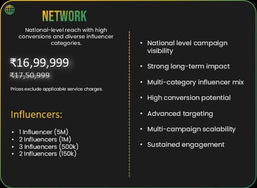 Pan-India campaigns with multi-category influencers for maximum impact and conversions.