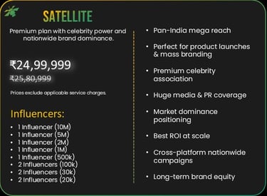 Ultimate package for market leaders to dominate with mega reach and celebrity association.