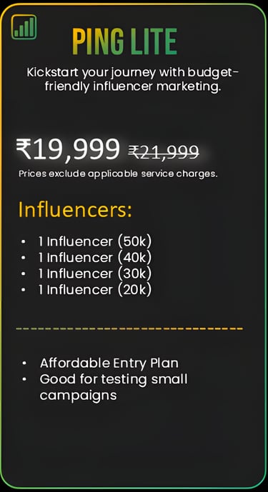 Perfect for startups & small businesses to begin influencer marketing at an affordable scale.